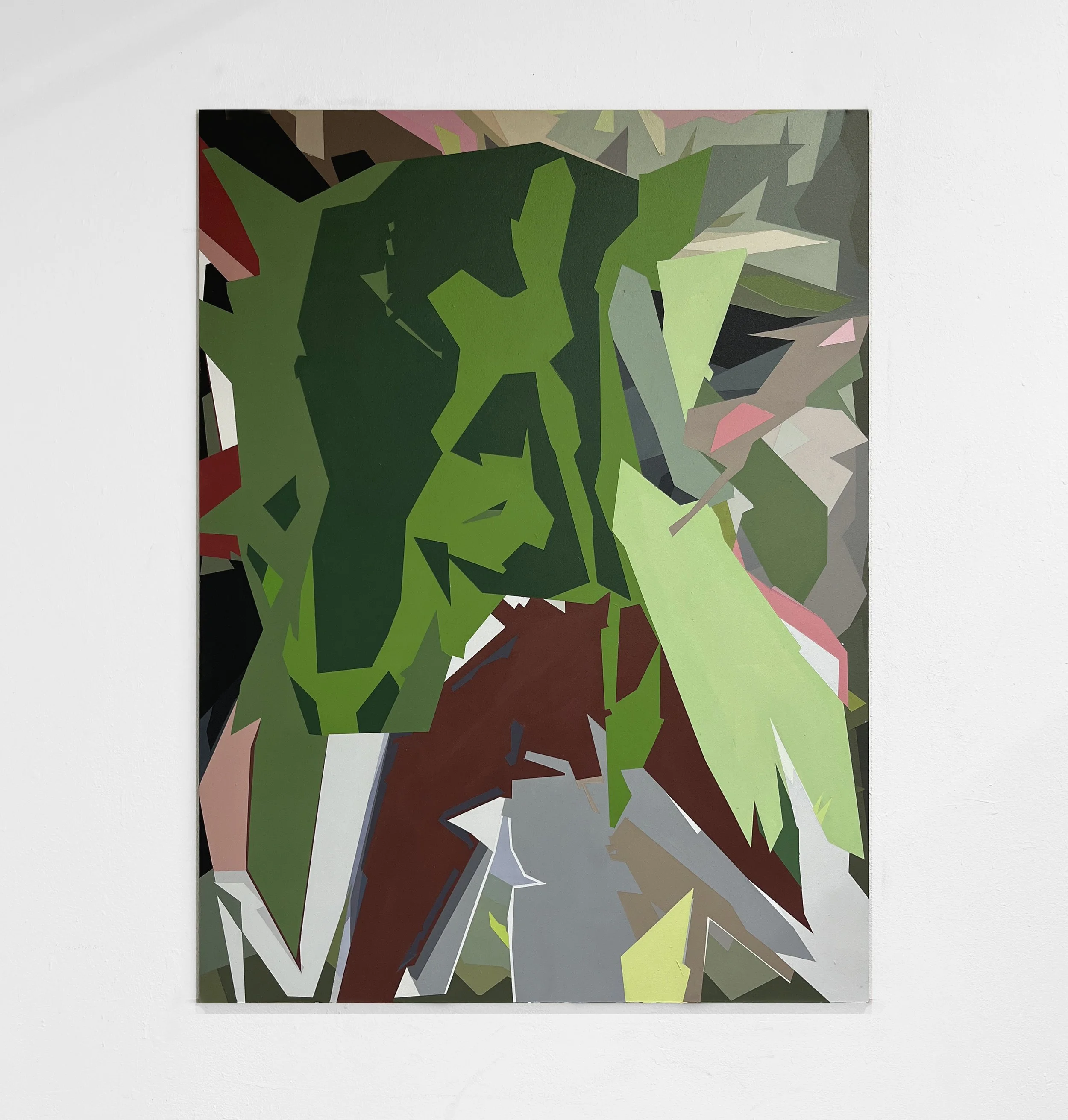 Paul Günther Köstner is best known for his abstract paintings which are inspired by the increasingly digitalized and urbanized world of images and forms. Köstner's creative work starts with computer-aided processes through which he manipulates visual input into abstraction. Shapes, composition, and colors become the subject of his paintings and transform the images into concrete and flat versions of themselves. His style of painting, in which gestural and random elements are reduced to a minimum, prioritizes intuitive associations over explicit references — resulting in artworks that activate the viewer's mind in trying to understand what is depicted or, rather, if something is depicted. In a way, Köstner's paintings present the viewer with a play of deception. Through the flatness of the colors, the geometric shapes are emphasized. The compositions of sharp lines appear dynamic and expressive, concealing the calculated creational process that eliminates spontaneity.